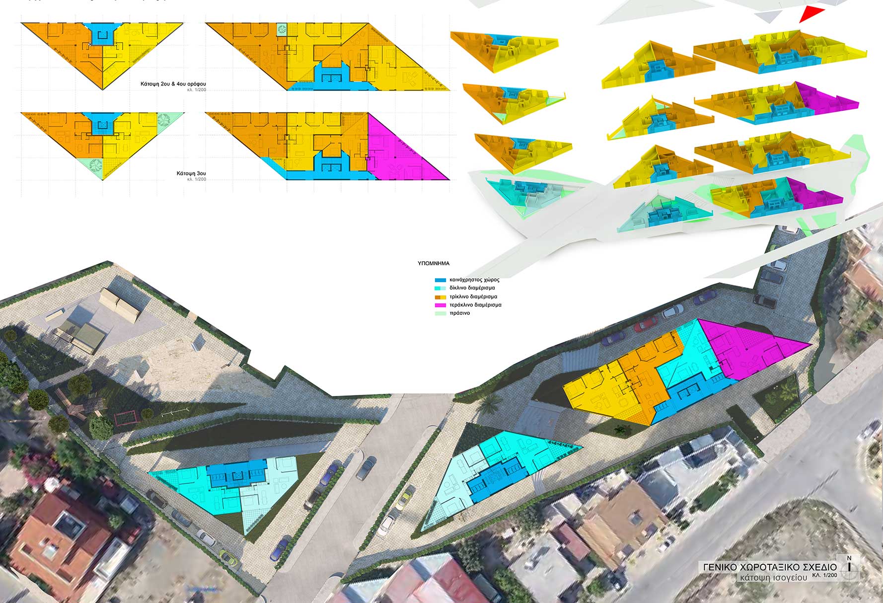 Συμμετοχή του αρχιτεκτονικού γραφείου PC Architects σε αρχιτεκτονικό διαγωνισμό, όπου οι συμμετέχοντες καλούνται να σχεδιάσουν κοινοτικές κατοικίες στην πόλη της Λάρνακας, στην Κύπρο. Η αρχιτεκτονική ιδέα βασίζεται στη μορφή του κύβου του Ρούμπικ, πιο συγκεκριμένα σε έναν “κομμένο” κύβο σε τριγωνικά κομμάτια. Ο σχεδιασμός και η κατασκευή πρέπει να είναι οικονομικά αποδοτικά, πρακτικά, λιτά και να εξυπηρετούν όσο το δυνατόν καλύτερα τους μελλοντικούς ενοίκους. Our proposal for the social housing competition by PC Architects. The project focuses on minimal, economical, simple, and sustainable solutions. The main concept is inspired by the Rubik’s Cube – not exactly, but imagine a cube being thrown into the competition area and breaking into triangular pieces. The design and construction aim to be practical, cost-effective, and streamlined, while serving the needs of future residents as efficiently as possible. |